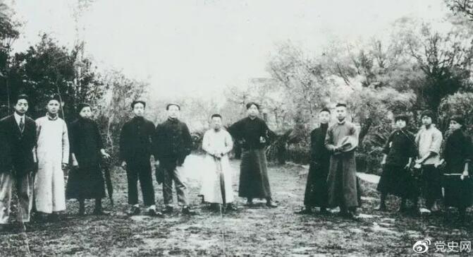 1920年5月8日,新民学会部分会员在上海半淞园合影。左七为毛泽东。