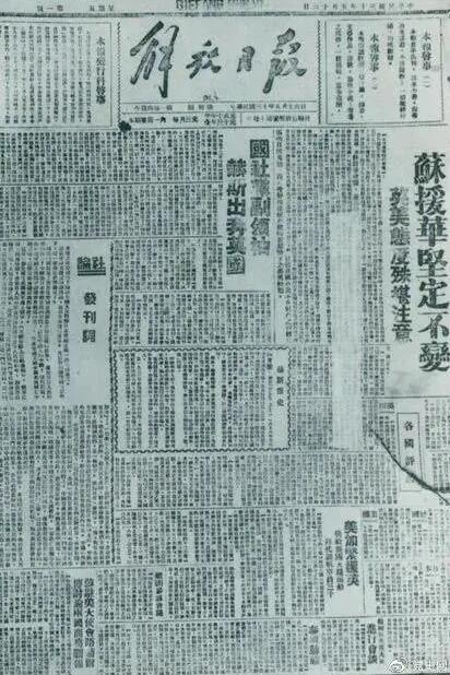 图为1941年5月16日在延安创刊的中共中央机关报《解放日报》。