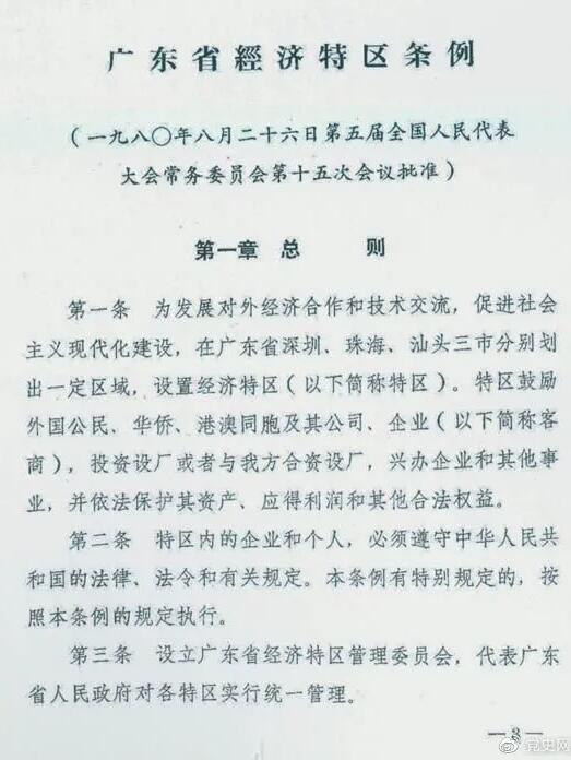 1980年8月26日,第五届全国人大常委会第十五次会议批准《广东省经济特区条例》。