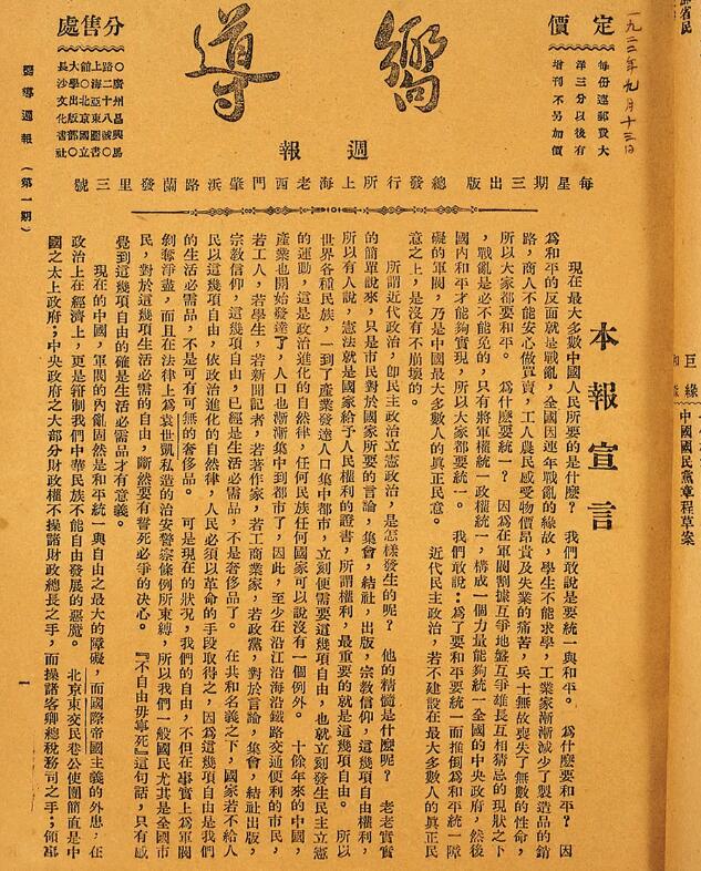 1922年9月13日,中国共产党机关刊物《向导》周报在上海创刊。图为该刊创刊号。