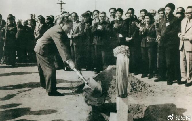 1984年10月7日,邓小平出席北京正负电子对撞机国家实验室奠基仪式,并为奠基石培土。