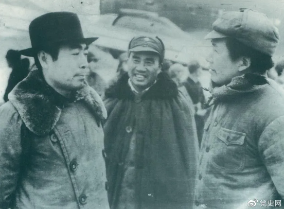 1945年11月11日,毛泽东、朱德赴延安机场迎接从重庆回来的周恩来。
